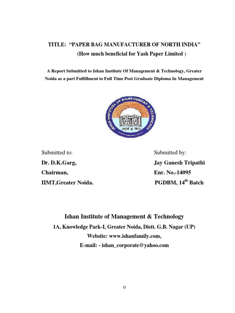 Paper Bag Manufacturing Project Report Pdf